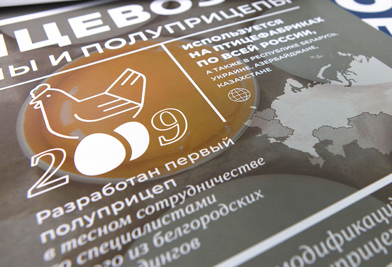 В результате клиентом был выбран вариант с инфографикой, как наиболее полно раскрывающий особенности продукции: интересные факты о каждом из видов техники, география продаж и история завода представлены здесь в лаконичных графических блоках на тематических фонах. Логотип на яркой обложке вытеснен бронзовой фольгой.