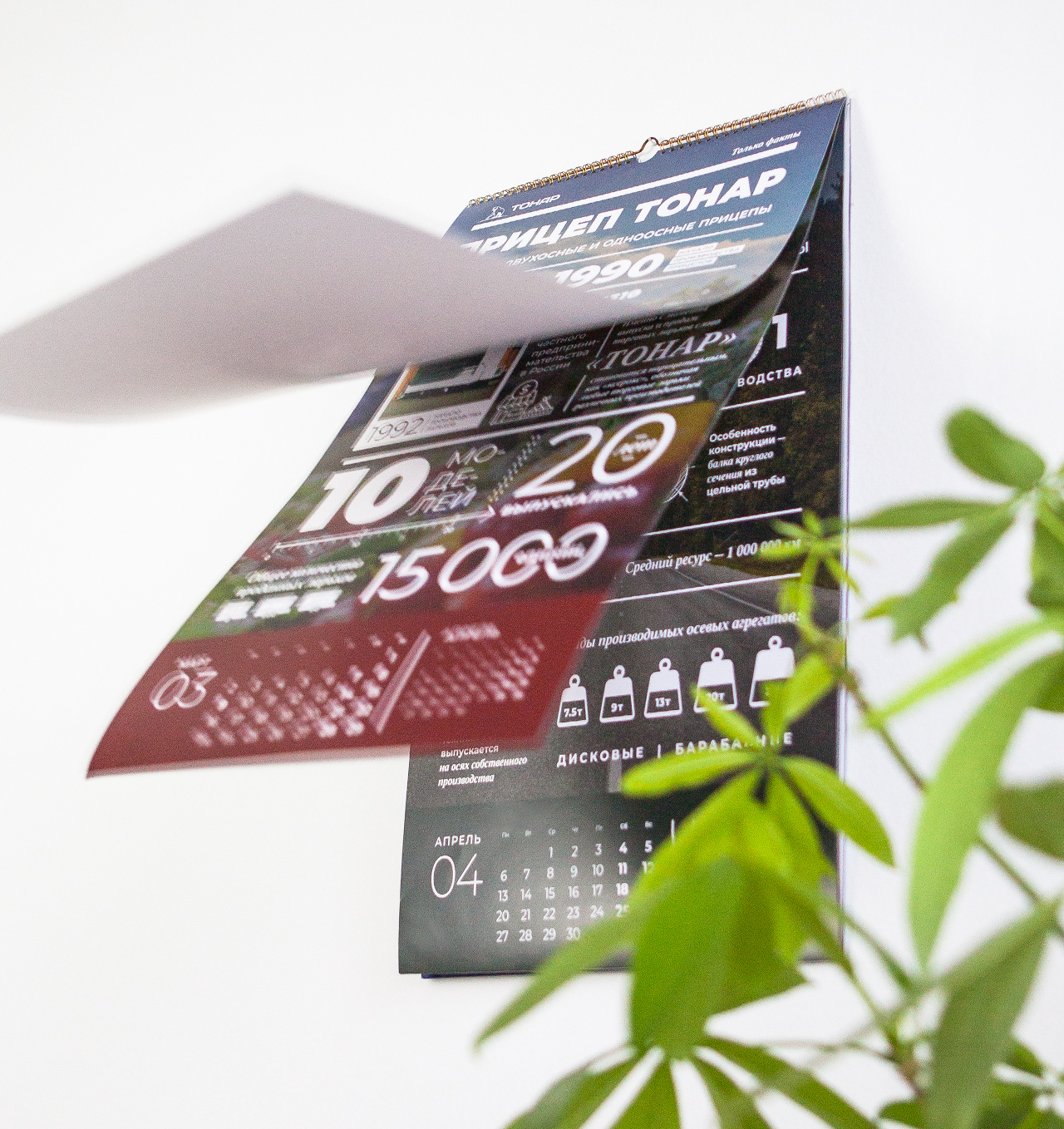 В преддверии Нового года в предельно сжатые сроки был создан большой перекидной настенный календарь для машиностроительного завода «Тонар».