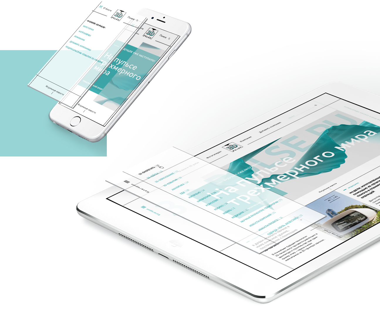 Перед нами стояла задача создать интересный и запоминающийся дизайн портала, который в первую очередь будет привлекать к сотрудничеству молодых инноваторов в области 3D-печати, и вместе с тем сохранить удобство и доходчивость интерфейса.