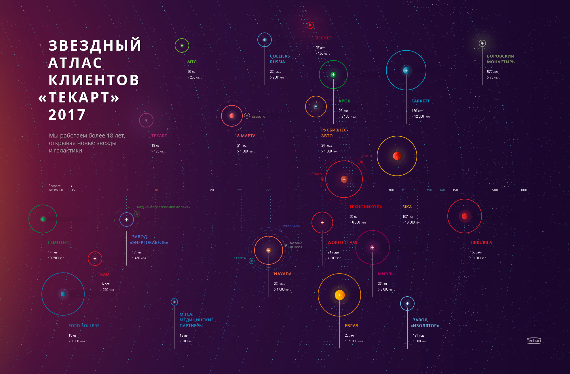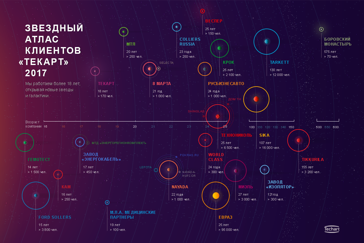 «Звездная» трактовка титульных клиентов базируется на возрасте компании и штате сотрудников.