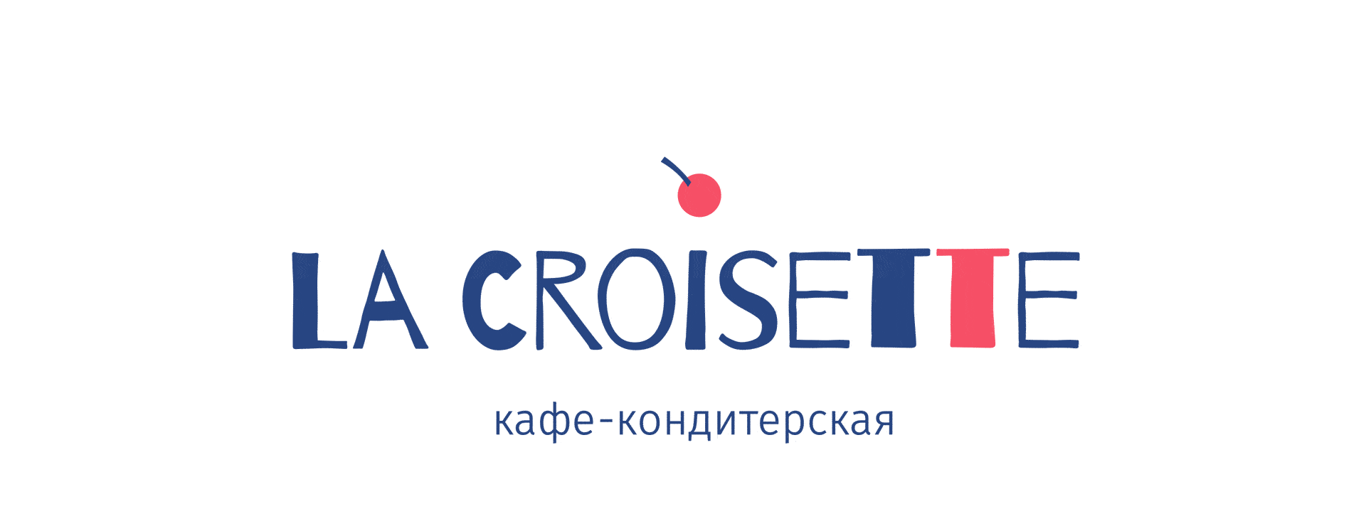Буква I в шрифтовой части логотипа увенчана вишенкой, а буквы T образуют узнаваемый рисунок французского флага