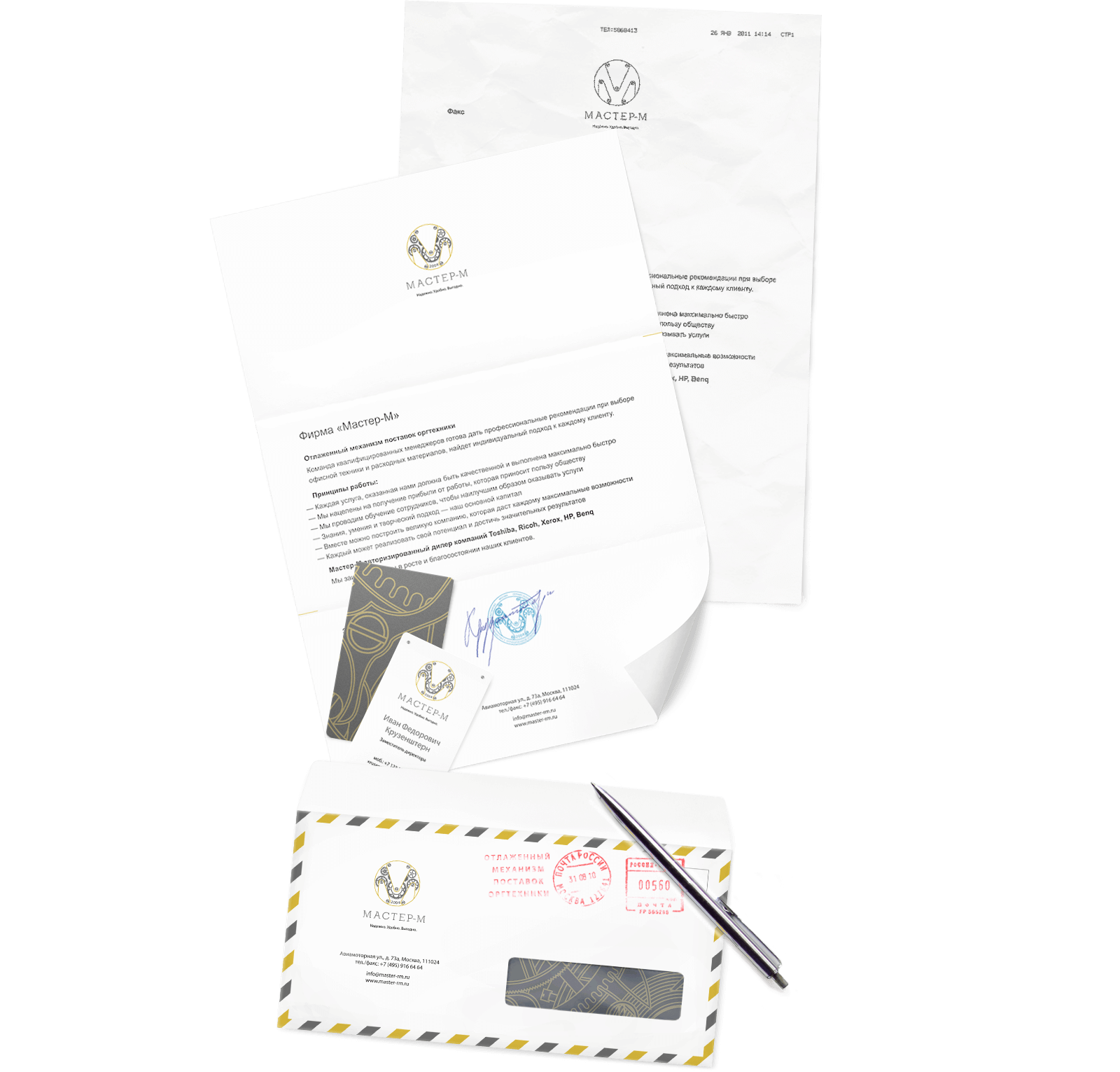Фирменный стиль поставщика офисной техники, компьютеров, сетевого оборудования, расходных материалов и запчастей для офисной техники, специализирующегося на ремонте лазерных принтеров, копировальных аппаратов и МФУ.