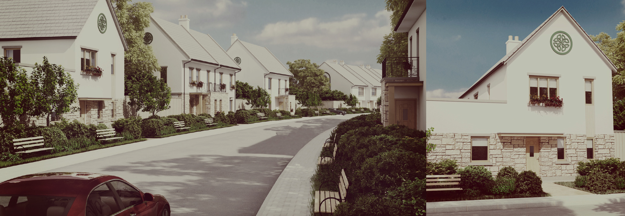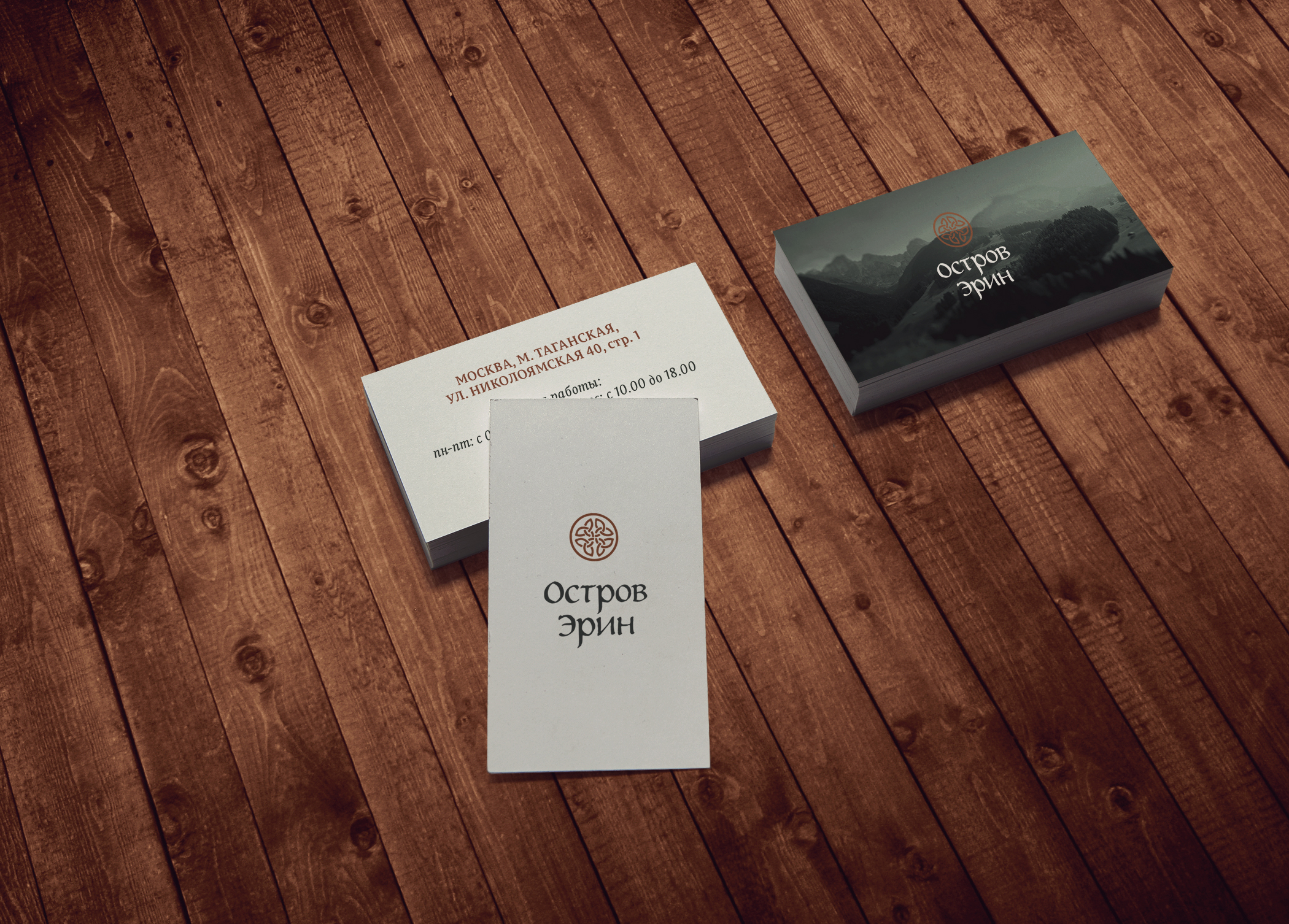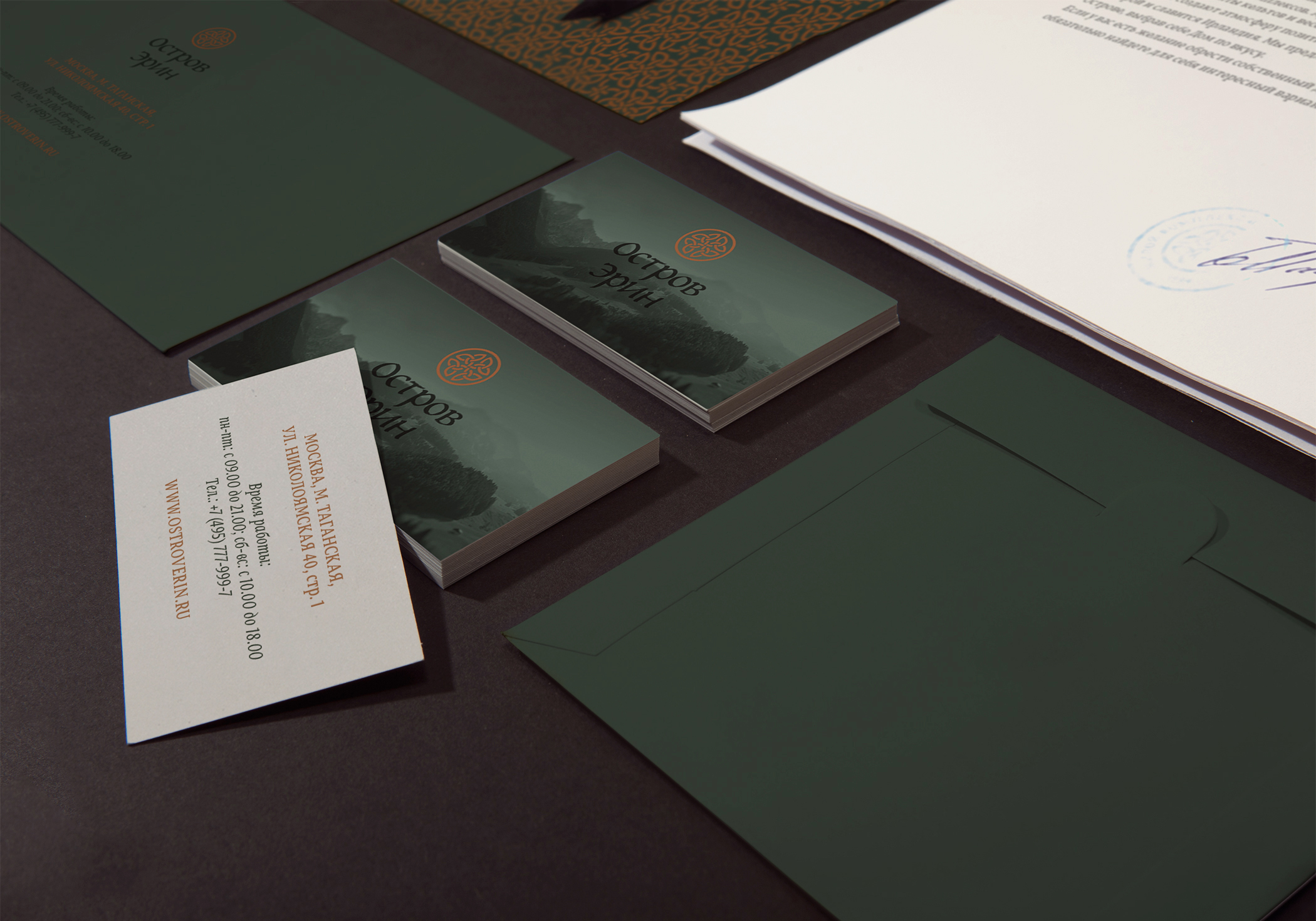 Фирменный стиль поселка создан под вдохновением от природы и истории Северной Ирландии. Кельтский орнамент, используемый в знаке, в сочетании с аутентичной типографикой гармонично сочетается с архитектурой поселка и его общей философией: единение с природой, экологичность, простота и умиротворенность.