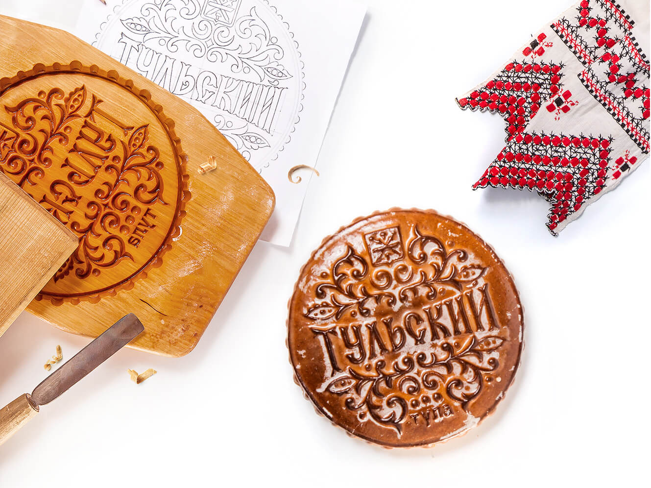 Тульский сладкий сувенир создаётся с помощью резной пряничной доски, которая печатает на заготовке замысловатый узор. Резать или,как говорили в старину, знаменовать такие формы — целое искусство.
