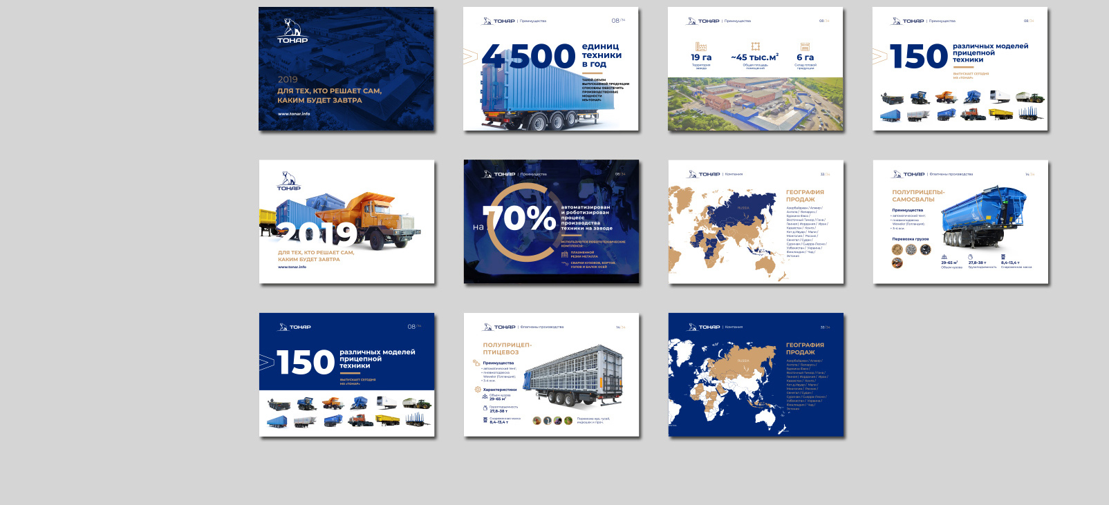 - ‘01Создан лаконичный и яркий шаблон презентации с фактами о заводе и продукции «ТОНАР»