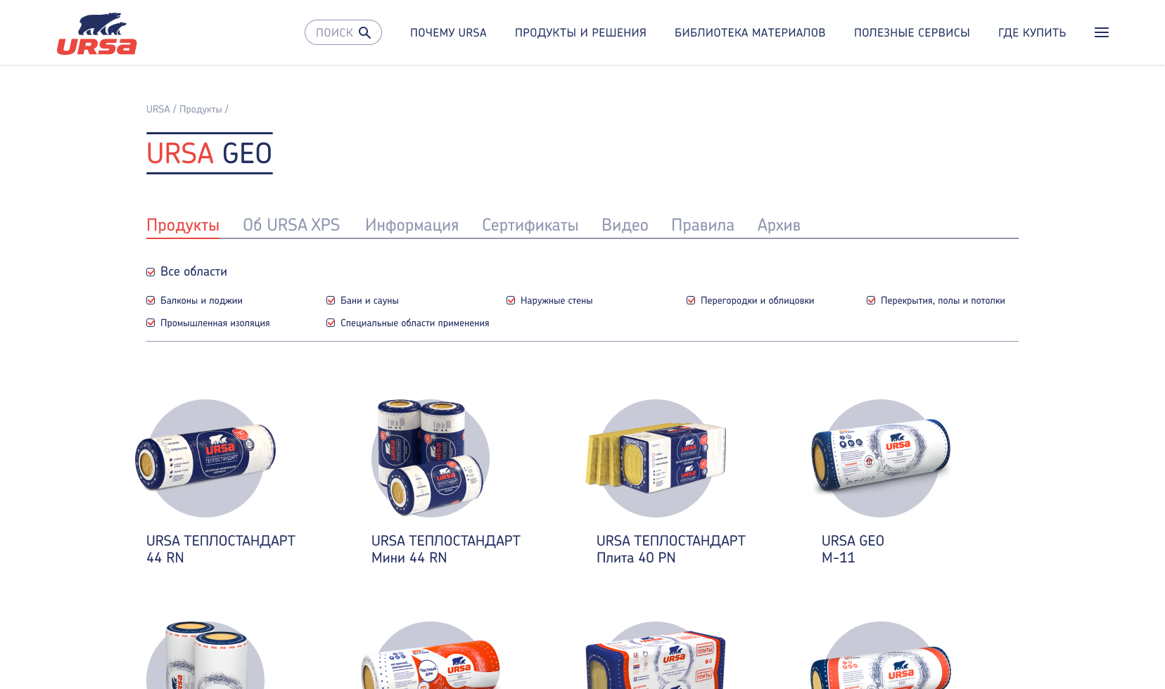 Использование фильтра по сферам применения позволило избежать вывода кратких описаний продуктов, что позволило облегчить товарную выкладку.
